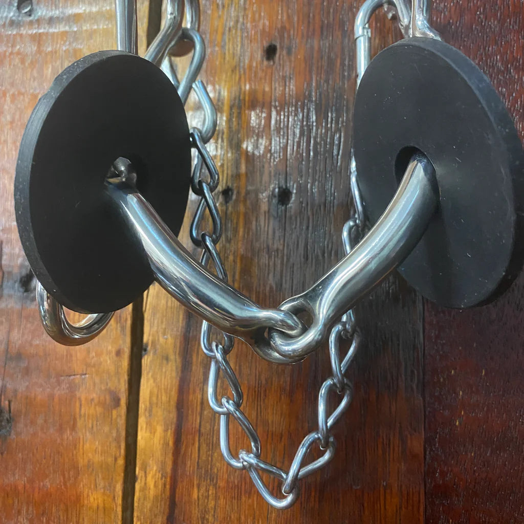 The CowCreek Butterfly bit is a great step up from an O Ring for young horses, re-schooling or transitioning to a softer bit with educated horses. It offers a quicker reaction time with the shorter purchase and shank. It comes with a chain curb and rubber bit guards.