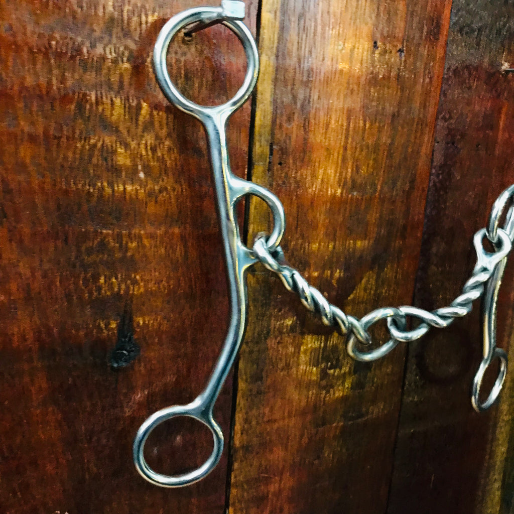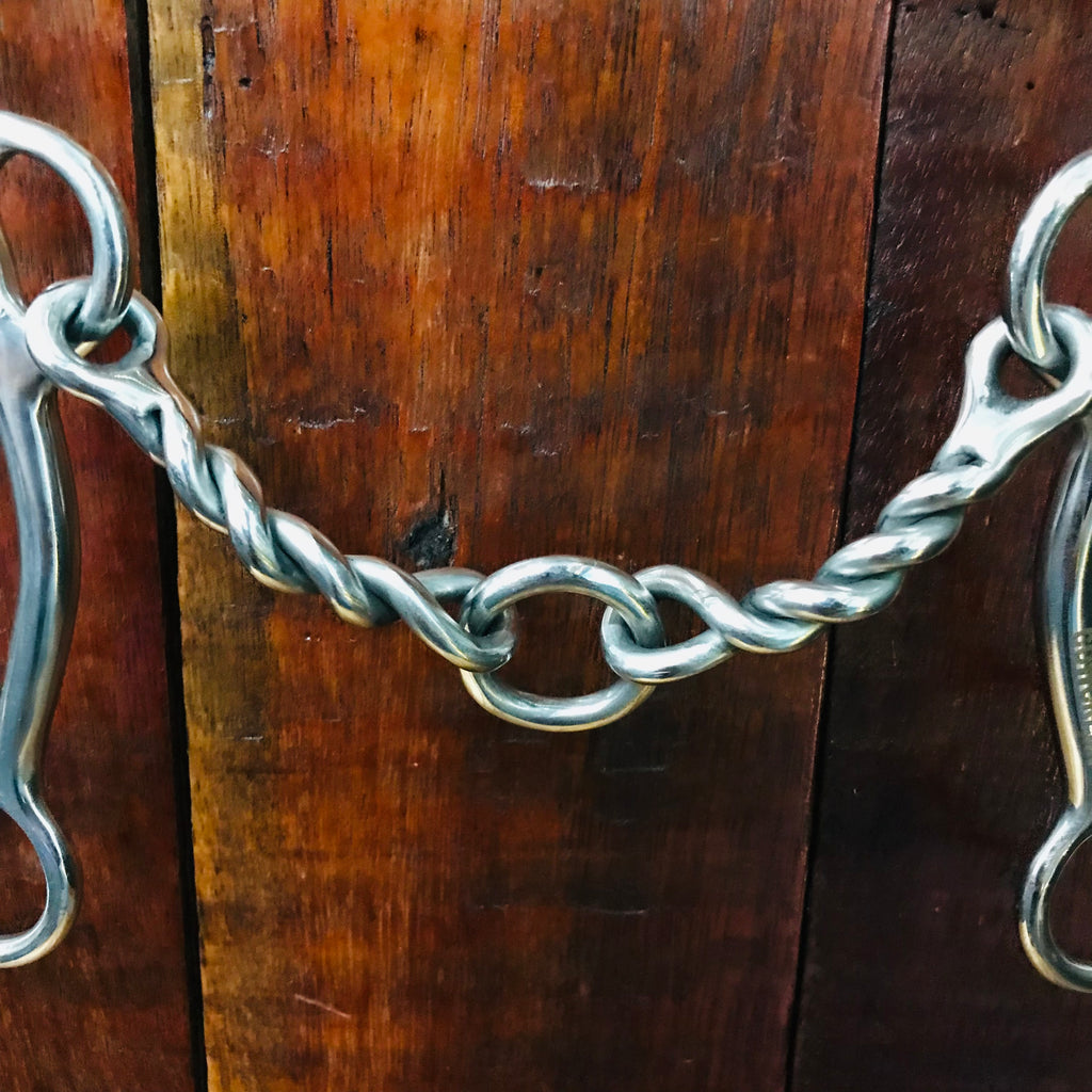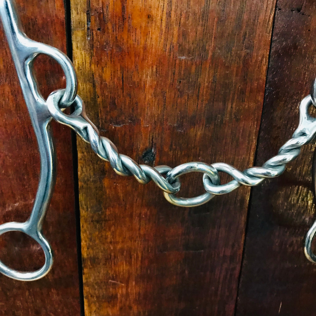 Less severe than a port with the same feel as a port. Provides more control than a dog bone. Available in a smooth, slow twist, twisted wire, bumpy or square style.