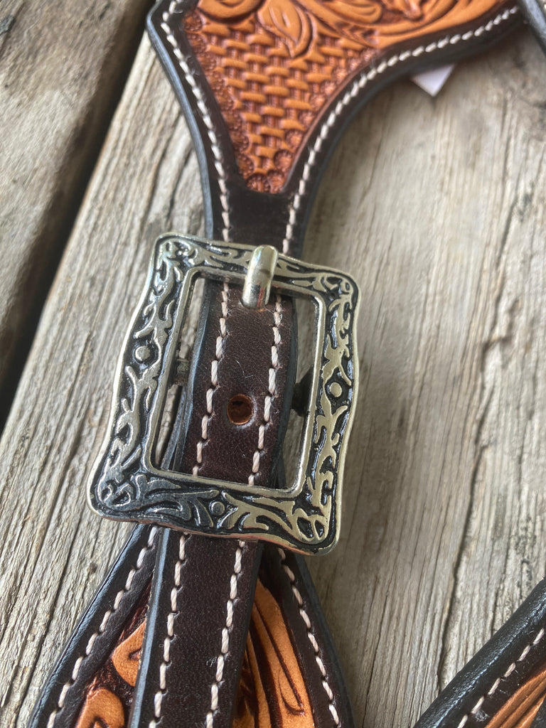 Ezy Ride Spur Strap Shaped Floral Stamping with Antique Buckle Two Tone